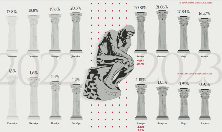При этом существуют и некоторые риски реализации проинфляционного сценария в 2023 году: цены на нефть остаются фактором высокой неопределенности, есть риски разворота продовольственной инфляции в мире, инфляция в России после сильного замедления во второй половине 2022 года с начала текущего показывает признаки ускорения.