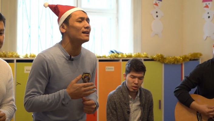 Марсель Алсеитов приехал в центр развития не один, вместе с ним был музыкант, аккомпанировавший ему на гитаре. В колпаке Санта-Клауса певец исполнил свои хиты и по совместительству любимые песни Тамилы - "Бұл өмірде" и "Асыл Жанымай". Девочка с удовольствием танцевала в такт любимым мелодиям.