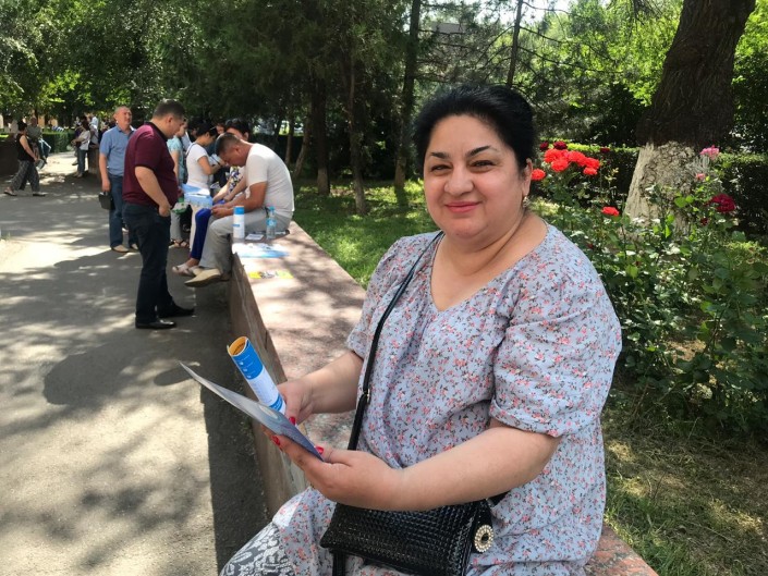 Алматинка Гульмира Гасанова тоже ждет, когда выйдет ее дочь. Говорит, с утра у девочки в горло кусок не лез. Переживает, справляется ли она с заданиями.