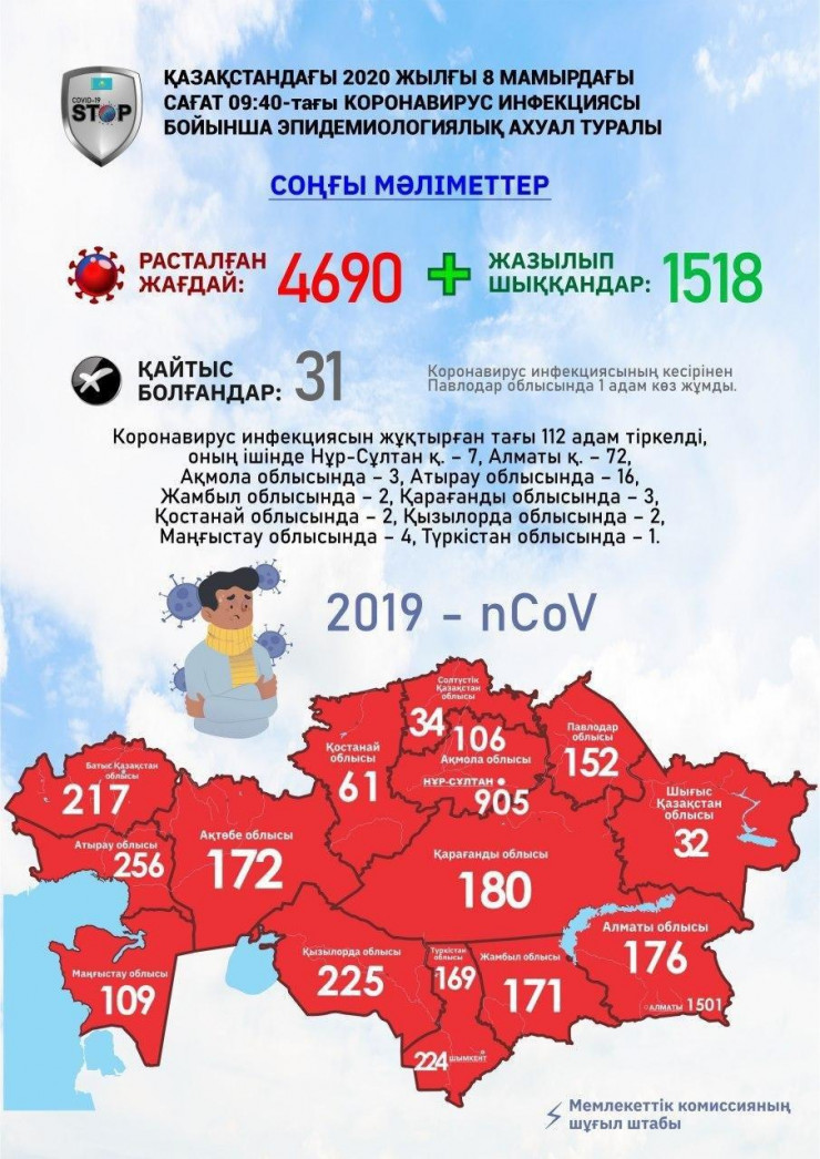Также этим утром стало известно сразу о 112 случаях коронавируса в Казахстане. Число заразившихся возросло до 4690.