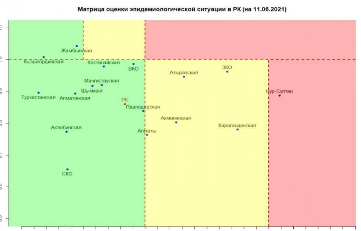 Согласно матрице оценки эпидемиологической ситуации в регионах Казахстана на 11 июня, в "красной" зоне остается Нур-Султан.