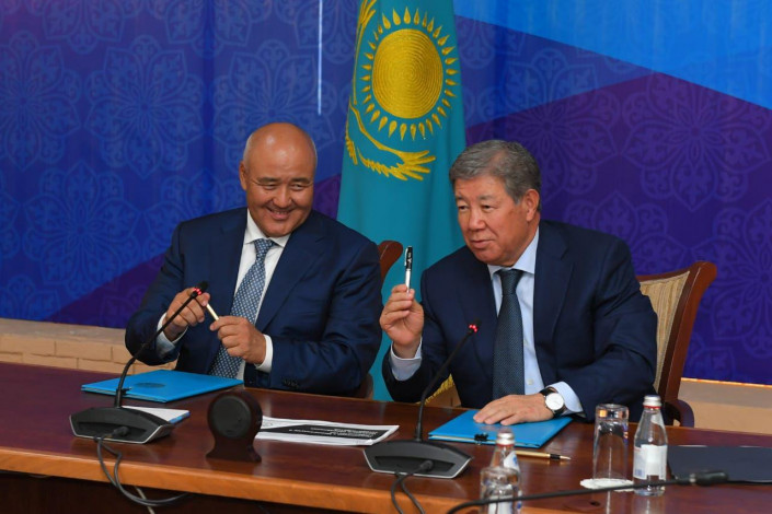 Посещением объектов в Арыси Ахметжан Есимов не ограничился и уже в Туркестане подписал меморандум с Умирзаком Шукеевым. Меморандум касается многих вопросов в различных областях деятельности - строительства, энергетики, цифровизации и других важных для взаимодействия Туркестанской области отраслей.