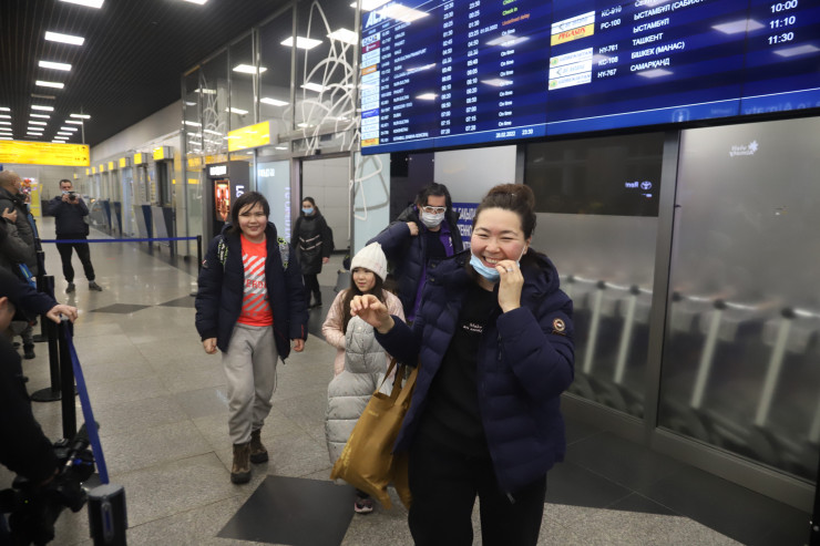 Самолет со 175 гражданами Казахстана приземлился в аэропорту Алматы 28 февраля в 22:30. Его прибытия ожидали еще ночью 26 февраля. В аэропорту казахстанцев встречали взволнованные родственники. Многие приехали с букетами цветов и воздушными шарами, некоторые не могли сдержать эмоций и плакали.