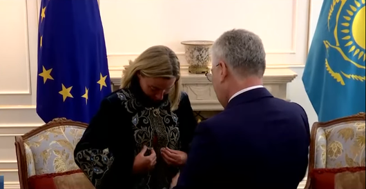 Верховному представителю ЕС по иностранным делам и безопасности Федерике Могерини подарили казахский чапан, передает Tengrinews.kz со ссылкой на "Хабар 24".