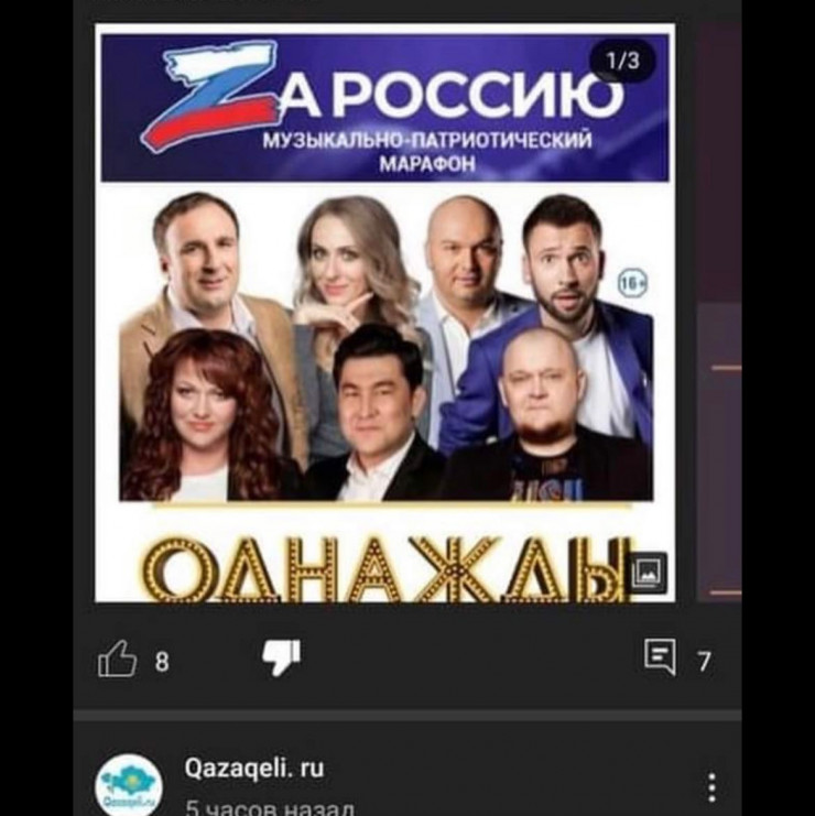 "Касательно распространяемой в социальных сетях информации о проведении в Алматы "музыкально-патриотического марафона" с участием комедиантов Ольги Кортунковой, Денисом Дороховым, Давидом Цаллаевым и других. Пресс-служба сообщает, что баннер-афиша "Za Россию!" является фейковой. Распространяемая информация – ложная. Афиша, дата, заявленный формат не соответствуют действительности.