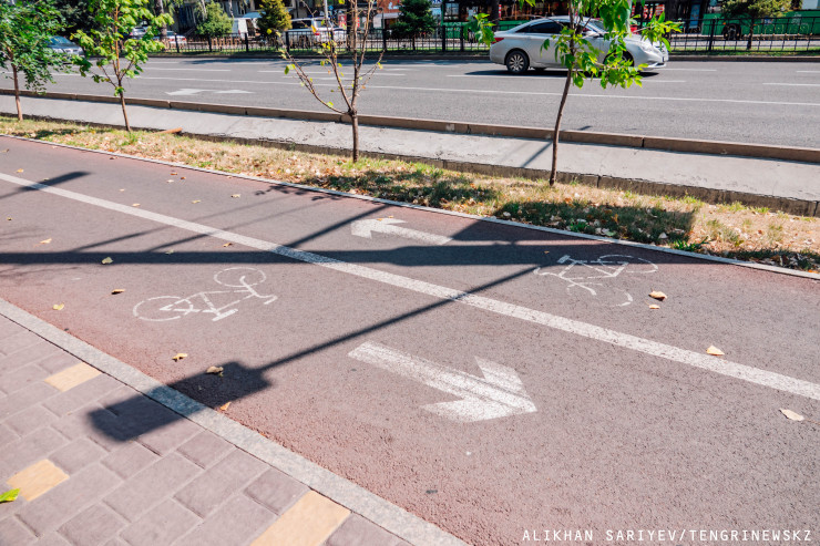 "По Саина и Северному кольцу также должны быть фундаментальные проекты, которые будут включать магистральную линию для общественного транспорта вроде БРТ или ЛРТ, развитую велоинфраструктуру и пространство для личного транспорта. Если будет возможность, в идеале это должны быть отделенные как от тротуара, так и от проезжей части велодорожки в тени деревьев, но если такой возможности нет, то хотя бы велополосы на проезжей части, но только чтобы они были запланированы заранее, а не встроены в существующую улицу. Для этого нужно их новое проектирование", - добавил Джусупов.
