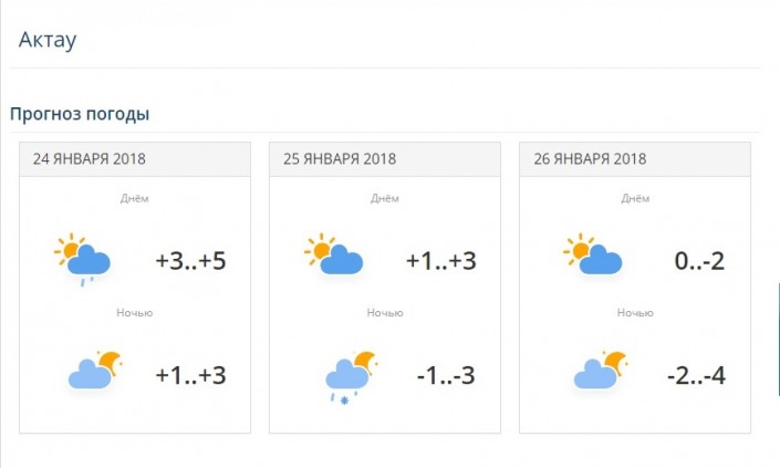 24 января в Актау выдалась облачная погода, местами дождь, днем температура воздуха составила +3...+5 градусов. В четверг, 25 января, воздух прогреется до +1...+3 градусов. 26 января - от 0 до -2 градусов.