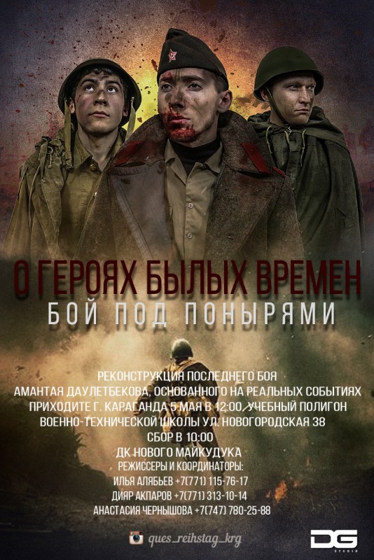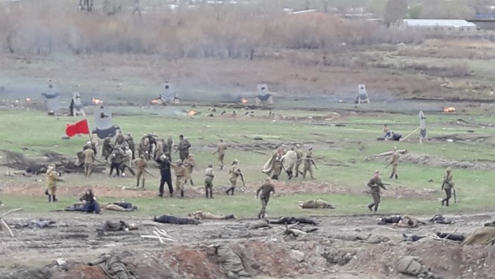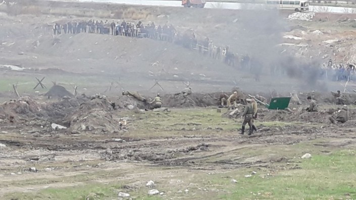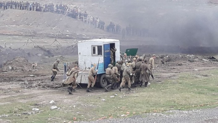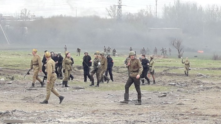 В эти минуты происходит военно-историческая реконструкция эпизода, основанная на реальных событиях 1943 года - одном из самых страшных сражений Второй мировой - битве на Курской дуге. Инициативная молодежь решила показать подвиг своего земляка - Амантая Даулетбекова.