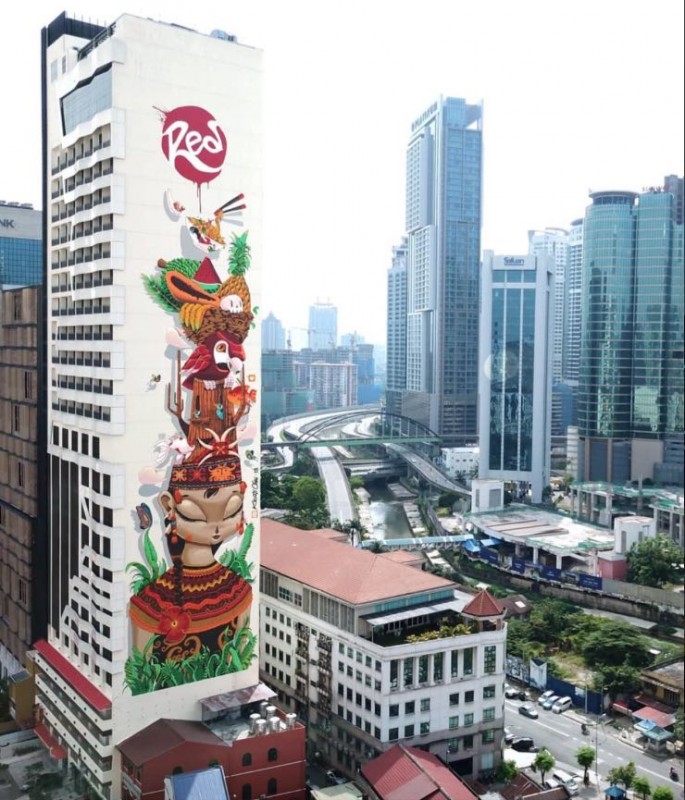 Он прибыл специально для участия в III международном фестивале по монументальному искусству MURAL FEST. Kenji Chai - обладатель национального рекорда Малайзии на самый высокий мурал в стране - 87,1 метра.