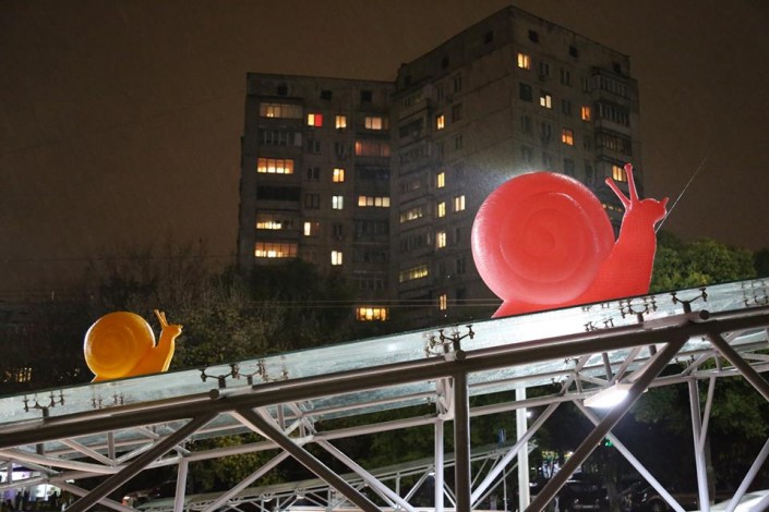 Автор "Улиток" - итальянская арт-группа Cracking Art. Признанная во всем мире серия городских инсталляций Cracking Art была создана в 1993 году. Цели проекта - превращение городского пространства в огромную выставочную площадку и забота об экологии.