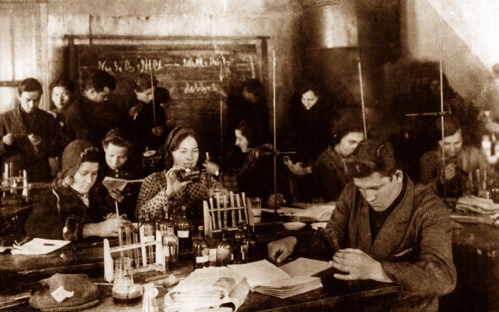 Первый состав преподавателей и студентов. Фото предоставлено пресс-службой КазНУ имени аль-Фараби.