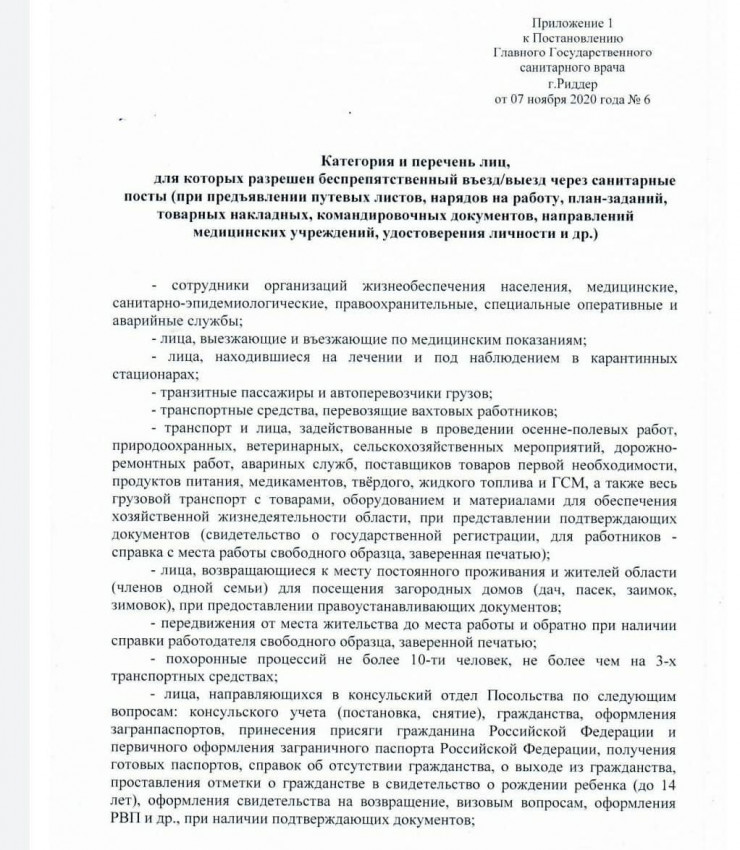 С 8 ноября въезд и выезд из вышеназванных населенных пунктов запрещены, за исключением некоторых категорий граждан, указанных в постановлениях главных санитарных врачей регионов.