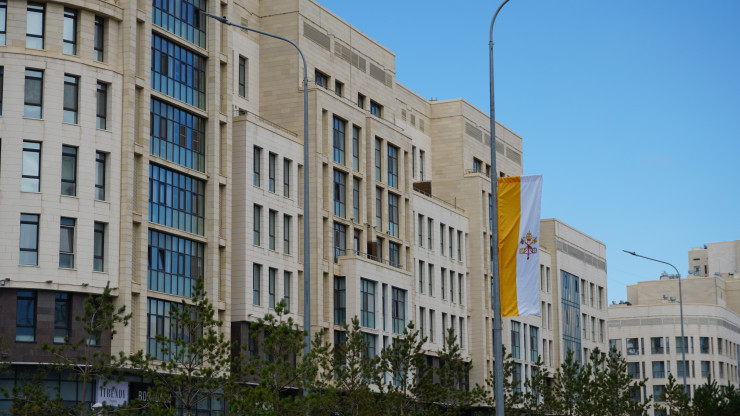 Флаги можно встретить от самого аэропорта и по всему проспекту Мангилик ел, а также в районе EXPO, где 14 сентября Папа Римский проведет мессу.