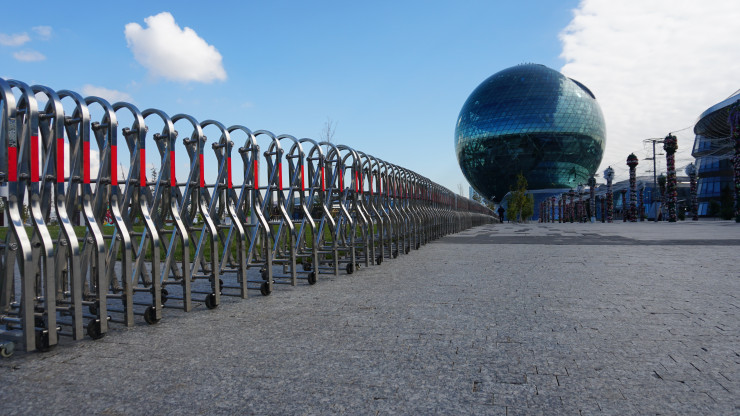 Площадь у сферы Nur Alem разделили металлическим ограждением.