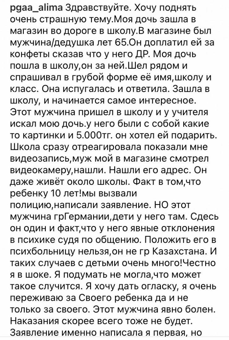 Родители девочки написали заявление в полицию. Правоохранители задержали подозреваемого. Выяснилось, что подозреваемый - гражданин Германии, который на протяжении семи лет незаконно жил на территории Казахстана в доме рядом со школой, сообщает elitar.kz.