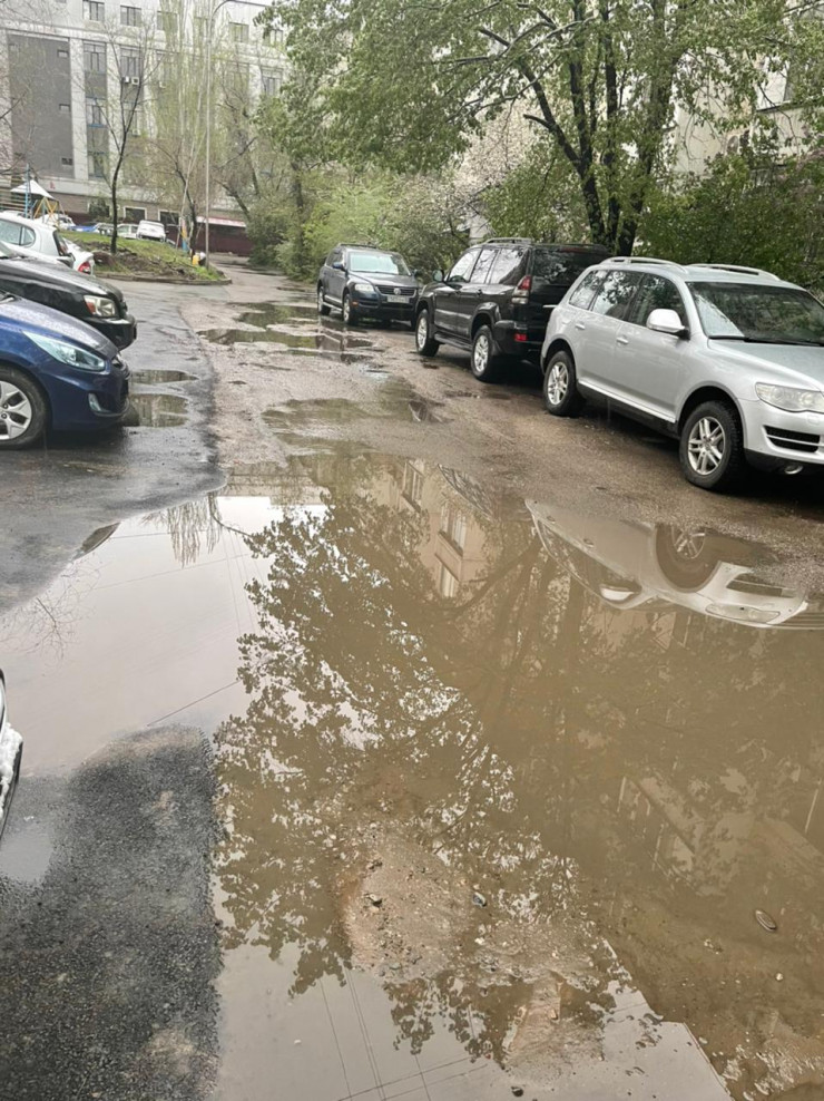 В редакцию Tengrinews.kz обратились жители сразу нескольких домов в квадрате улиц Гагарина-Байкадамова-Жарокова-Березовского. Они показали, как выглядят их дворы в дождливую и в сухую погоду.