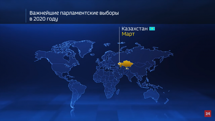 Российский государственный телеканал "Россия 24" выпустил видеоролик, в котором говорится, что парламентские выборы в Казахстане пройдут в марте 2020 года.