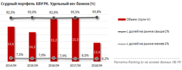 "Примечательно, однако, что ссудный портфель сильнее сокращается у мелких банков: казахстанцы предпочитают брать займы в надежных крупных фининститутах. Так, из 16 БВУ с долей от кредитного рынка более 1 процента в плюсе сразу 11", - комментируют аналитики.