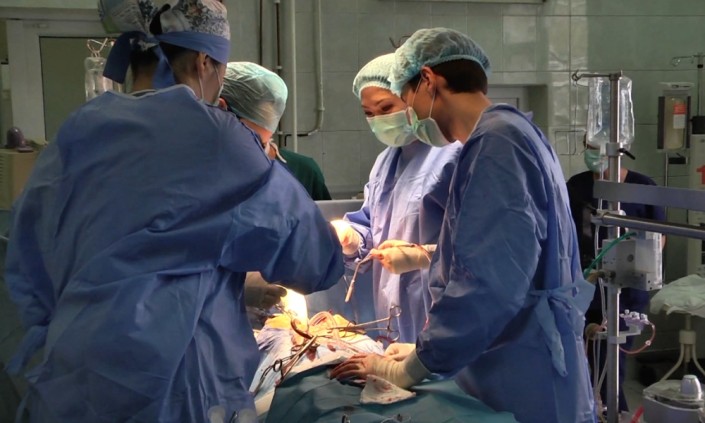 Хирурги Национального научного центра хирургии имени А. Н. Сызганова во время операции. Фото с сайта nnch.kz