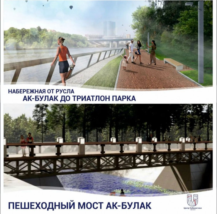 В управлении намерены продолжить объединение парковых кластеров вдоль русла реки Есиль, создать велосипедные и пешеходные дорожки и построить два пешеходных моста.