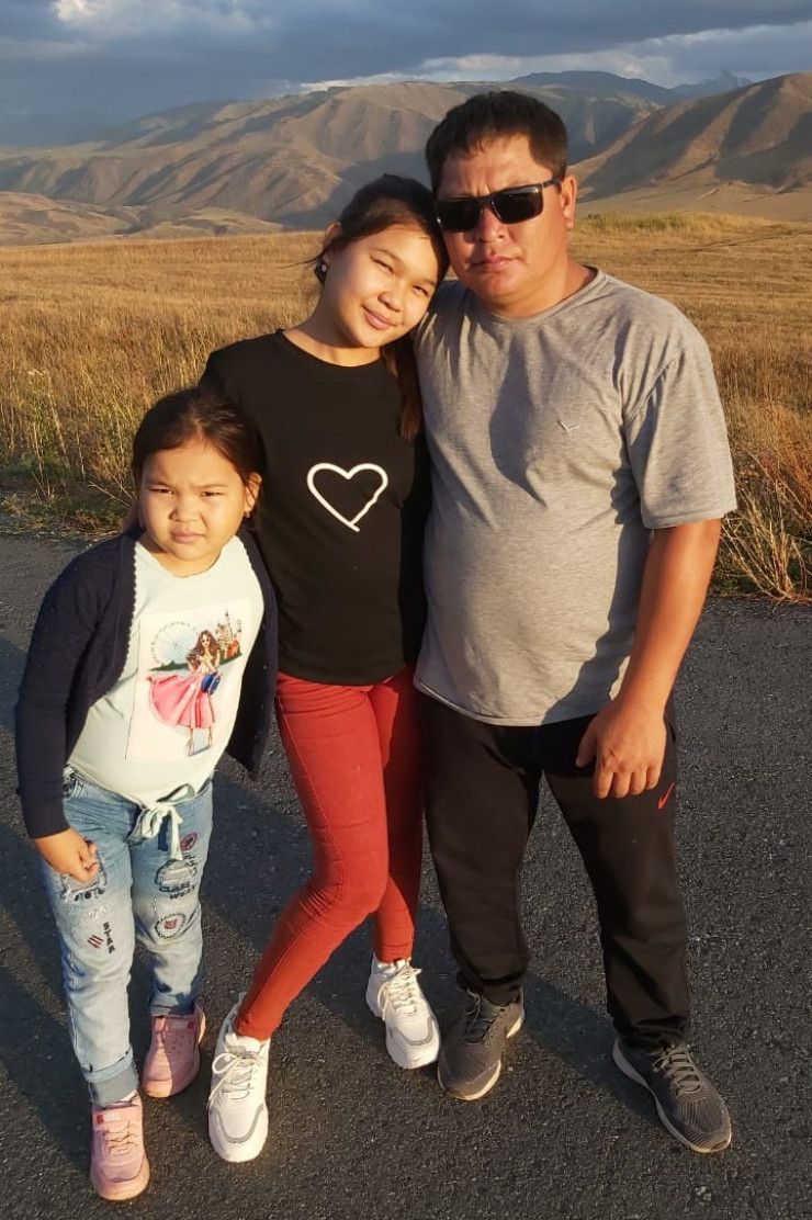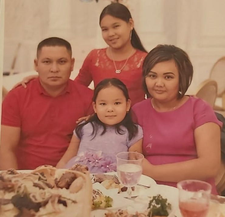 Азамат и Назгуль вместе со старшими дочерьми