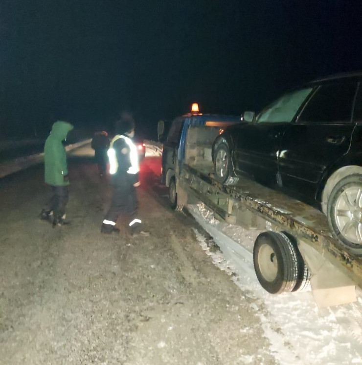 Женщина с грудным ребенком в салоне почти на час застряла в мороз на загородной трассе Семея: спустило колесо. Выручили проезжавшие мимо сотрудники полиции.