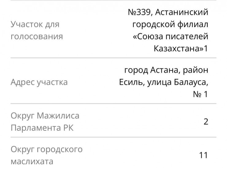 Как сообщила нам жительница Астаны, сегодня утром она отправилась голосовать по адресу, который был указан в ее мобильном приложении eGov – улица Балауса, 1.