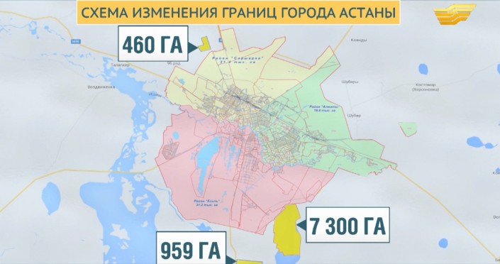 В ближайшем будущем площадь Астаны увеличится на 8719 гектаров (87 квадратных километров. Это на 26 квадратных километров больше площади Сан-Марино). На юге, где расширяют аэропорт и строят новый терминал, к столице примкнет участок земли площадью 7300 гектаров. Добавят также и два небольших участка (959 и 460 гектаров), где будут располагаться новые кладбища. Об этом говорится в сюжете телеканала "Хабар".