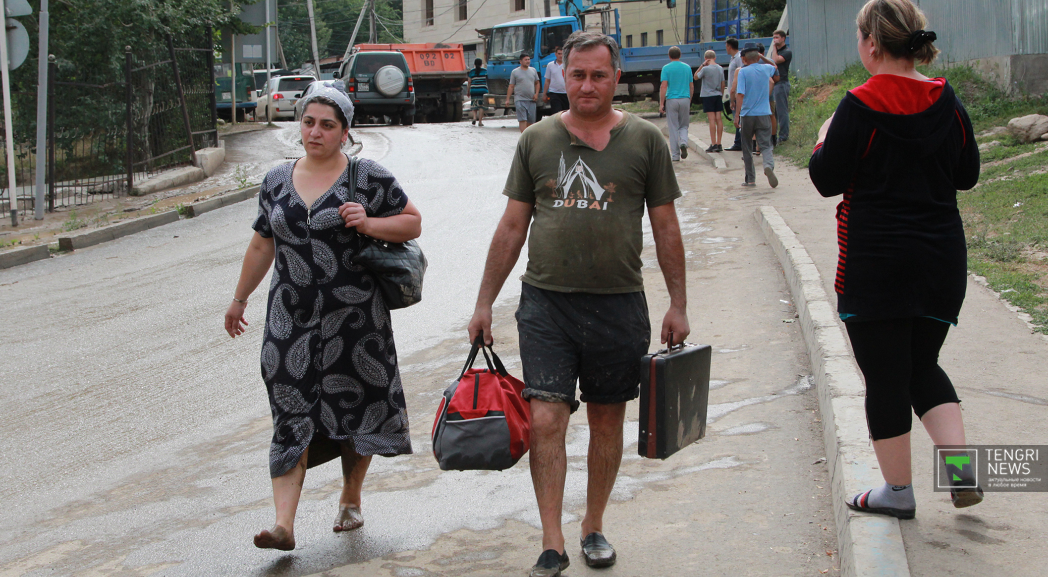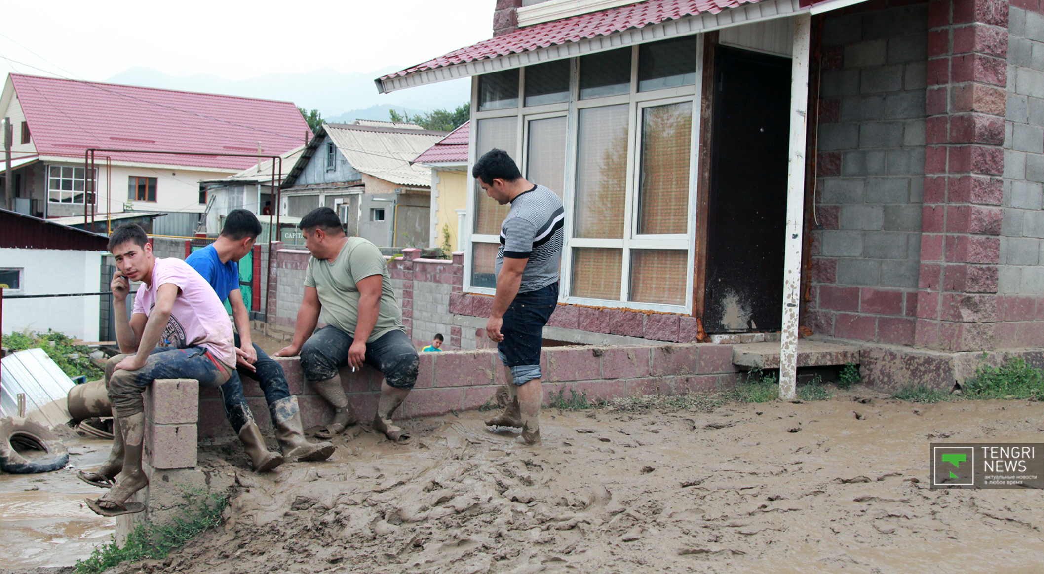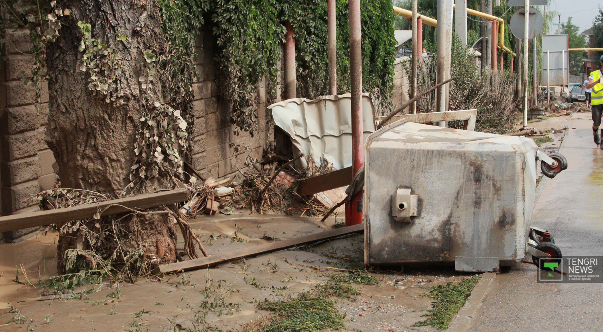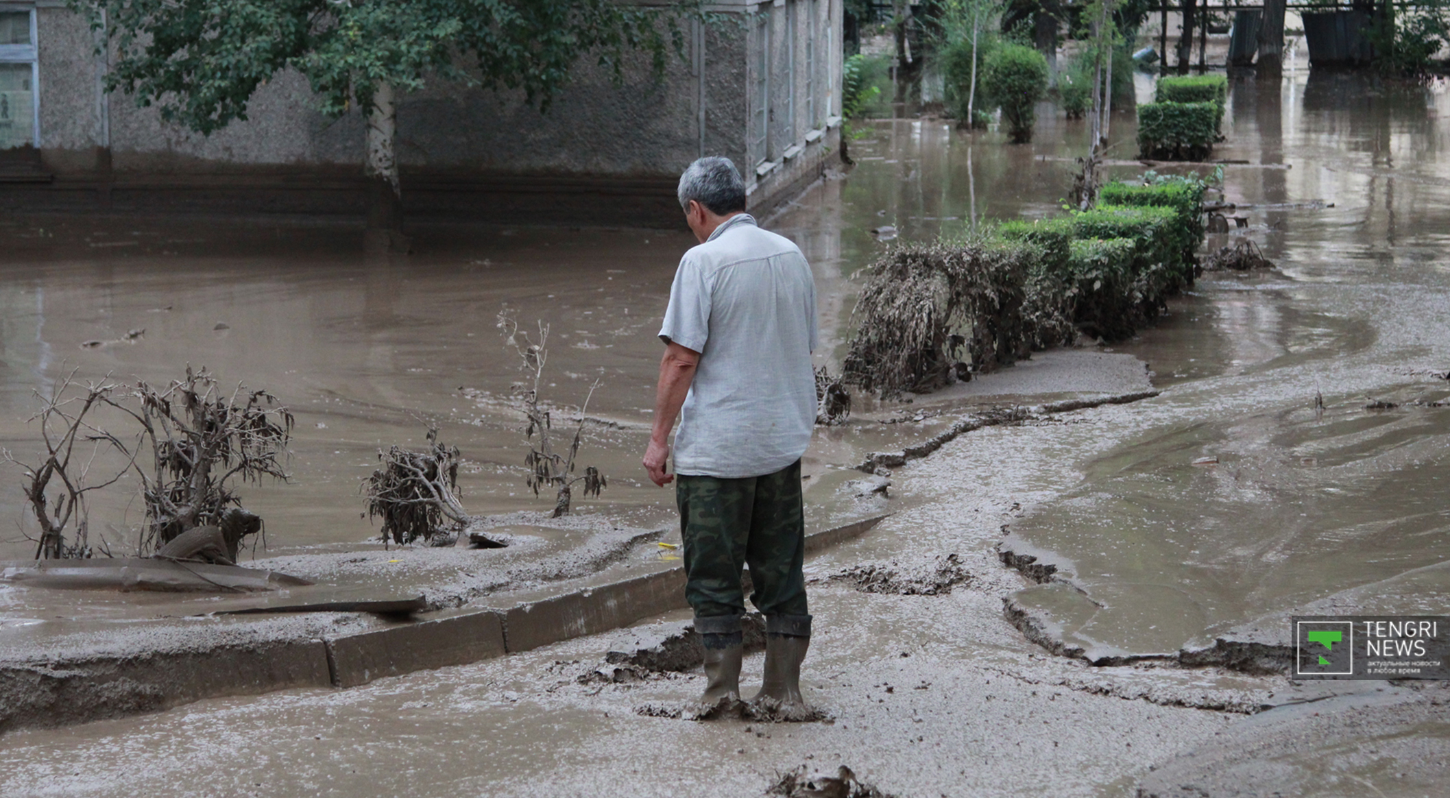 Журналисты Tengrinews.kz подоспели к месту ЧП после рассвета. К тому времени основной поток селя уже спал, и люди начали своими силами восстанавливать порядок. Им помогали подоспевшие на место сотрудники ЧС.