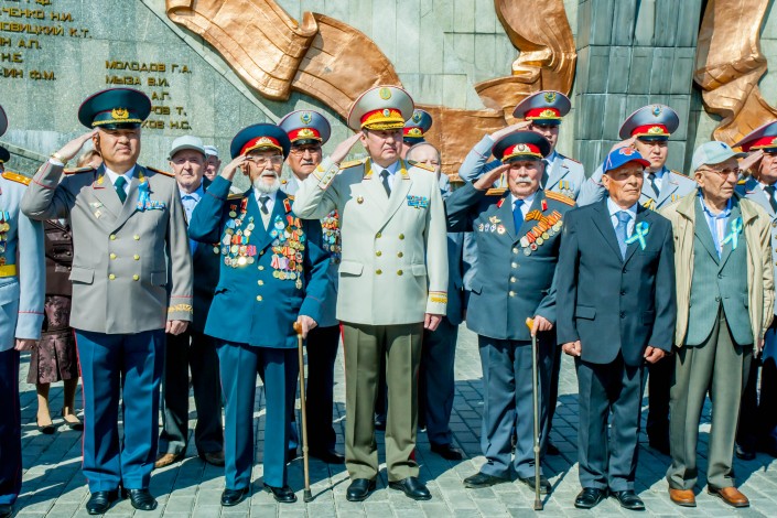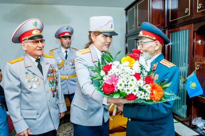 13.52 Во главе колонны сотрудников полиции в Усть-Каменогорске прошел 95-летний участник Великой Отечественной войны Курмат Рахимович Рахимов. До этого он несколько лет смотрел праздничные мероприятия только по телевизору. В этом году дедушка твердо решил, что должен встретить 9 Мая в строю.