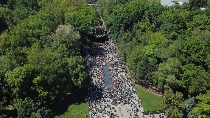 13.55 Вот как выглядело шествие в Алматы с высоты птичьего полета.
