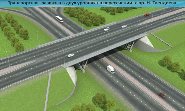 На пересечении с проспектом Тлендиева сейчас идет строительство второй очереди - соединение подхода Обхода и строительство правоповоротных съездов.