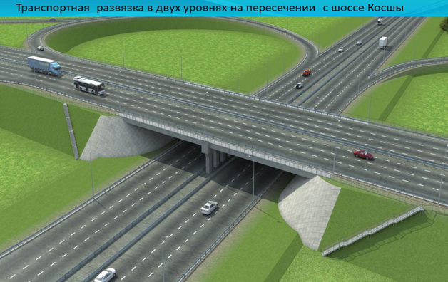 На пересечении с автомобильной дорогой в сторону поселка Косшы Обход пройдет по верхней части по путепроводу.