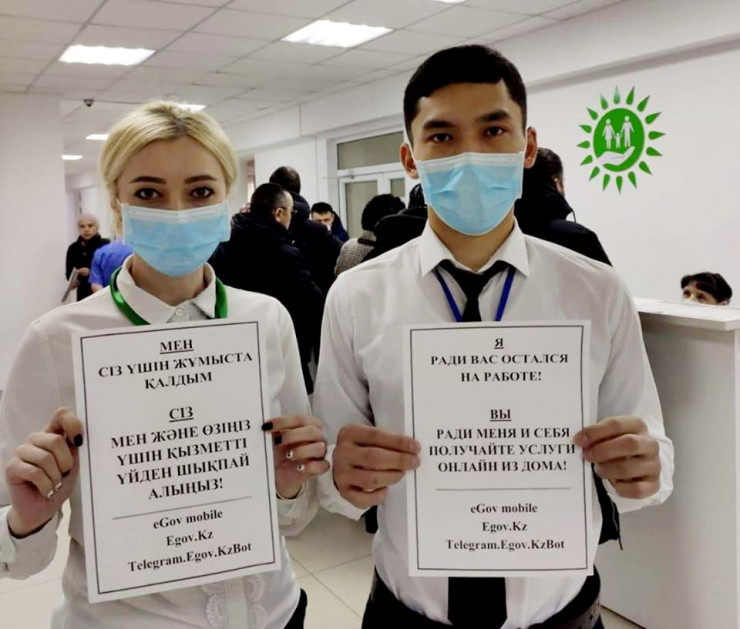 "Мы усилили работу call-центра 1414. Сотрудники ЦОН будут дистанционно помогать вам получать необходимые госуслуги самостоятельно. Отложите свой поход в ЦОН, если в этом нет острой необходимости. Берегите себя и своих близких", - написал Жумагалиев.