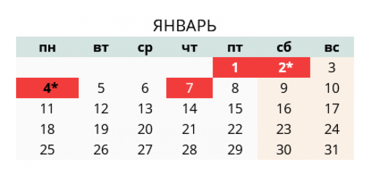 Сообщается, что официальными новогодними выходными являются 1 и 2 января 2021 года. Так как 2 января выпадает на субботу, выходной переносится на 4-е число, то есть на понедельник.
