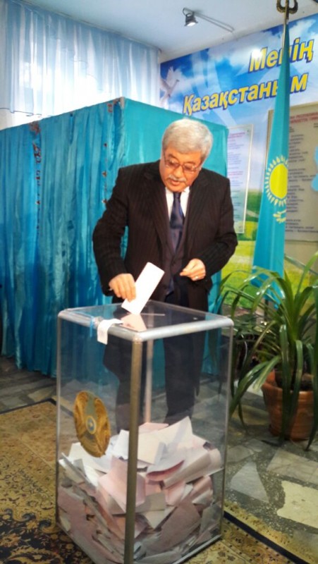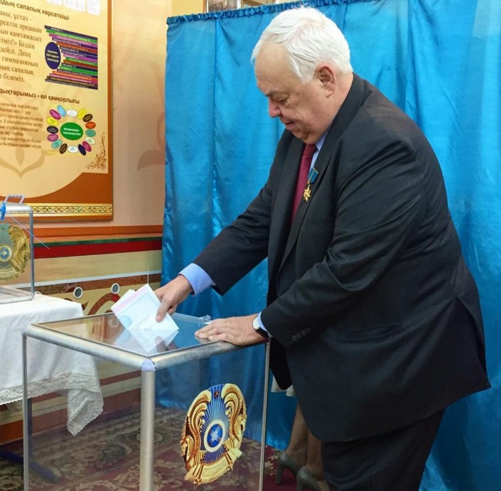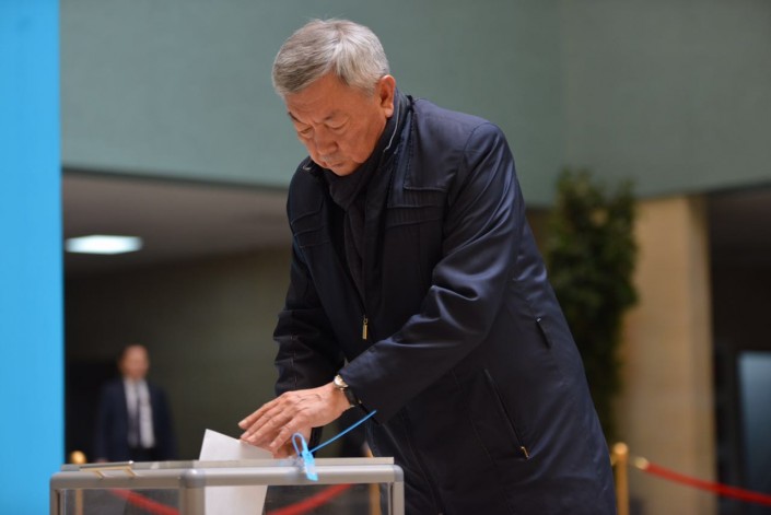 Экс-глава КНБ, сенатор Нуртай Абыкаев проголосовал на избирательном участке №81.