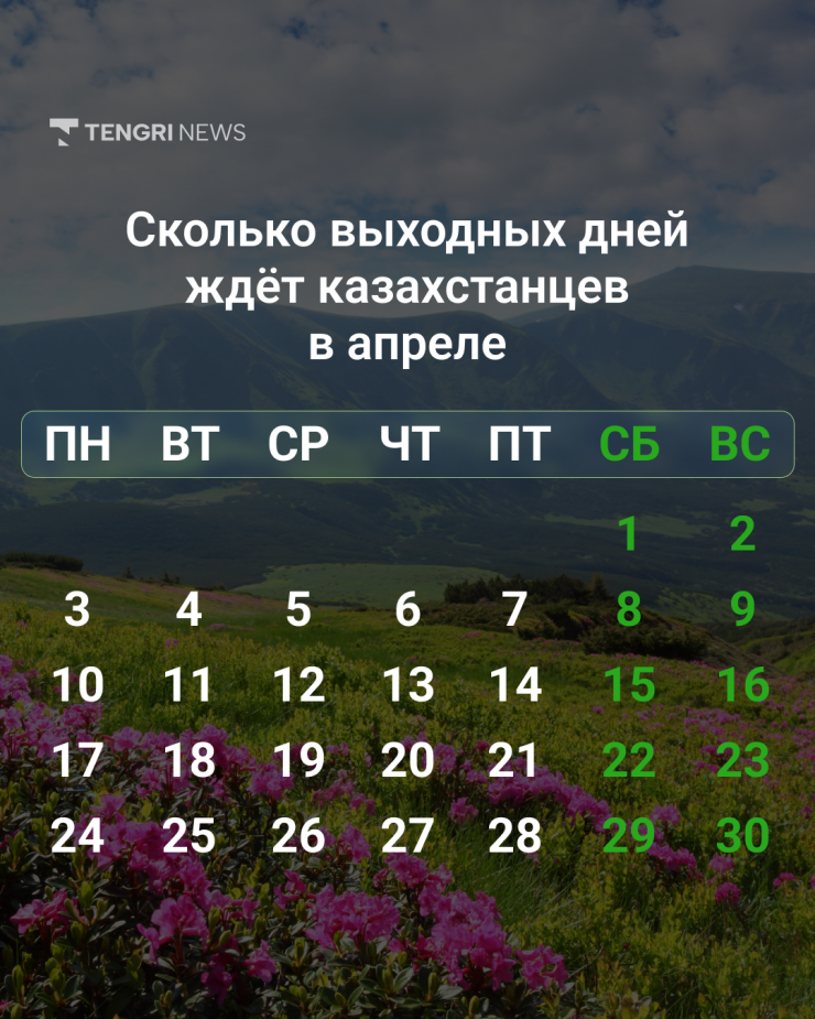 В апреле казахстанцы, работающие по пятидневной рабочей неделе, получат 10 выходных дней, передает корреспондент Tengrinews.kz.