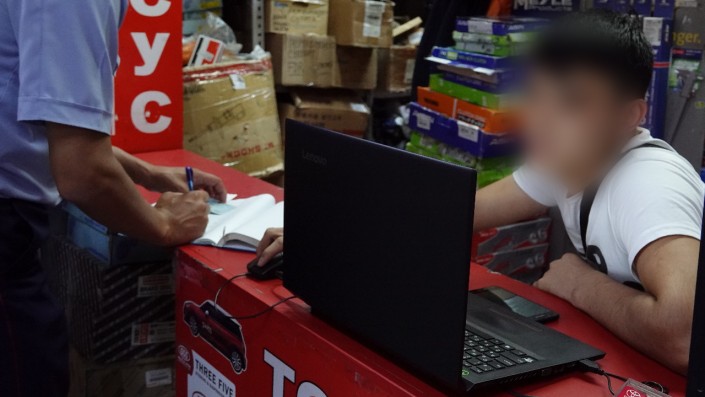 "Ворованные запчасти продаете?" - спрашивают сотрудники полиции у коммерсантов. Продавцы отвечают, что ведут "честную" торговлю. Среди аргументов даже прозвучало, что продавать краденое - это "харам" (запретное действие в шариате).