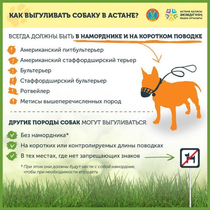 Правила и ограничения для собак и их владельцев в виде инфографики опубликовала на своей странице в Facebook пресс-секретарь акима Астаны Эльвира Жургенбаева.