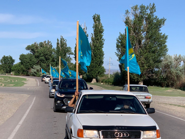 А десятки автолюбителей в день праздника проехали по центральным улицам города Уштобе Каратальского района, водрузив государственные флаги на машины.