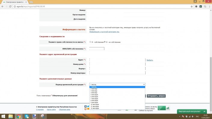 На портале электронного правительства РК появилась возможность пройти временную регистрацию на срок от одного месяца, передает корреспондент Tengrinews.kz. Отметим, ранее сотрудники центров обслуживания населения говорили, что временно зарегистрировать жильца можно минимум на три месяца.