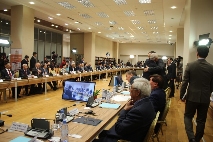 Как отмечалось ранее, в комиссию вошли 75 человек. Это представители различных политических партий, политологи, представители сельскохозяйственной сферы, правительства и Парламента. Участники сегодняшнего заседания прибыли к 10 часам утра в Национальный музей Казахстана.
