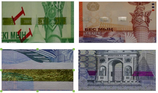 Абишева сообщила, что тенге чаще всего подделывают с применением лазерного принтера. По ее словам, реже встречаются поддельные банкноты, состоящие из двух склеенных частей, одна из которых подлинная, а вторая отпечатана на струйном принтере.