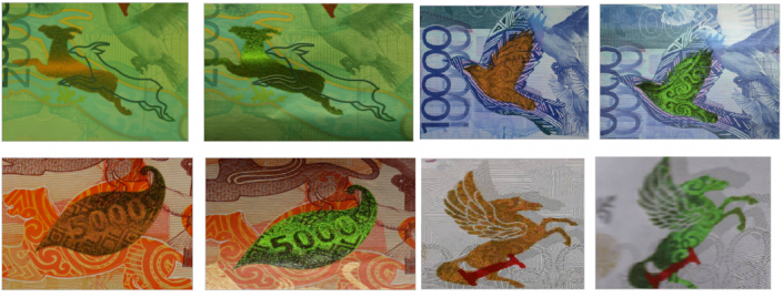 "Много информации дает изучение банкноты на просвет, это касается водяных знаков - в текущей серии это изображение мифической птицы "Самрук", цифровое изображение номинала. То есть это конкретный рисунок, а не бесформенные разводы, как это бывает на подделках. Аналогичным образом надо просмотреть сплошную магнитную и ныряющую (металлизированную) нить, выходящую на поверхность бумаги - в виде пунктиров с надписями, которые четко видны в проходящем свете, как одна целая нить с надписями. И последний метод - "Поверни" - на банкнотах имеются изображения, нанесенные цветопеременной краской. При поворачивании или наклоне банкноты изменяется цвет краски от зеленого до золотого. Речь идет об элементе СПАРК", - пояснила представитель Нацбанка.