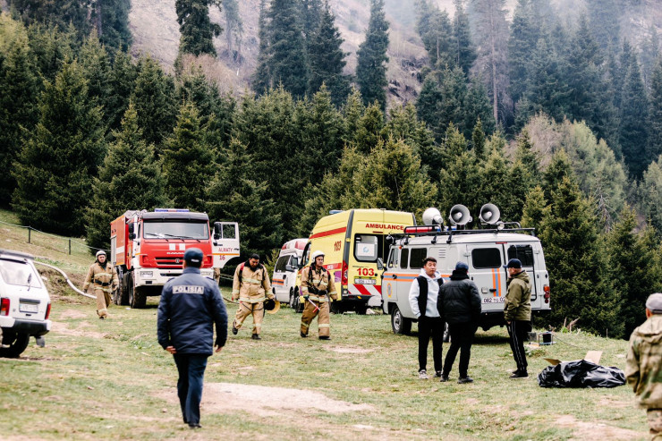 Задействовано: два вертолета АО "Казавиаспас" осуществлено 30 сбросов (90 тонн), также задействован вертолет МИ-8 МТВ Службы Спасения акимата Алматы. На месте работают 62 сотрудника и пять единиц техники ДЧС, сотрудники ГНПП - 42 человека.