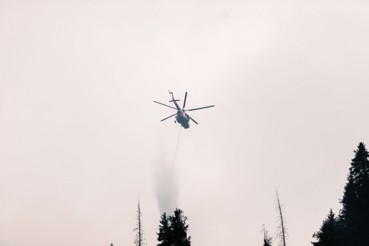 С воздуха пожарных поддерживают вертолеты.
