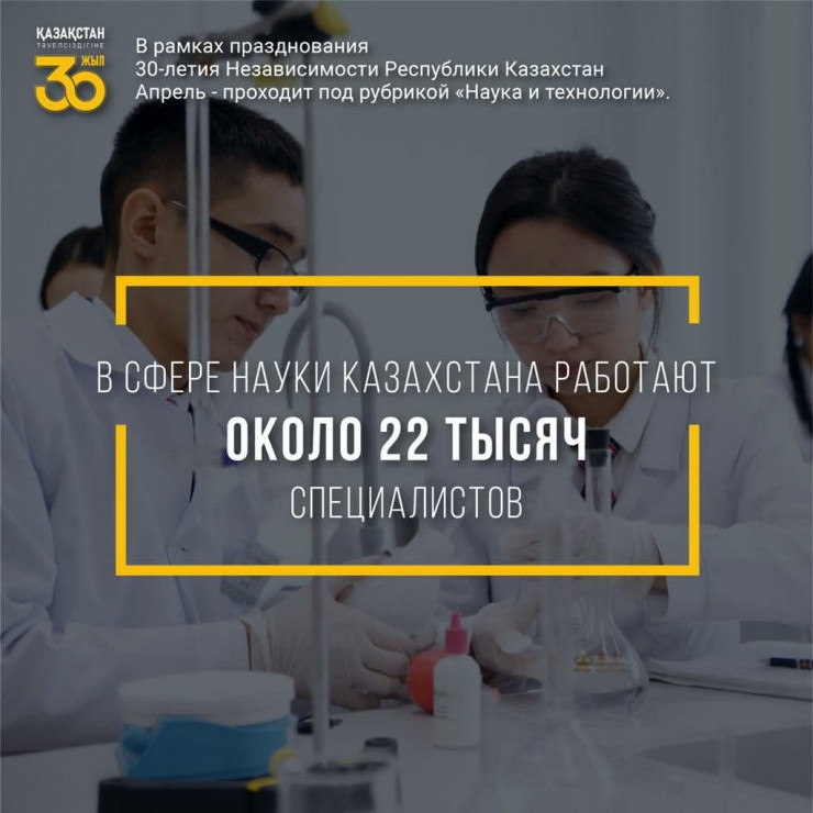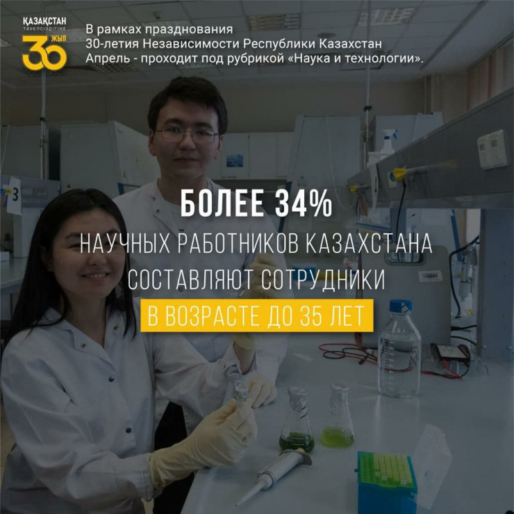 Отметим, сегодня в сфере науки Казахстана работают около 22 тысяч специалистов. Более 34 процентов научных работников Казахстана составляют сотрудники в возрасте до 35 лет.