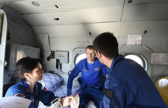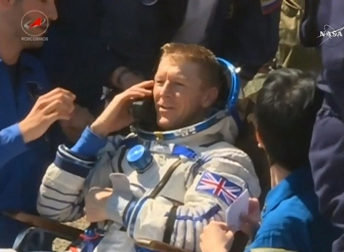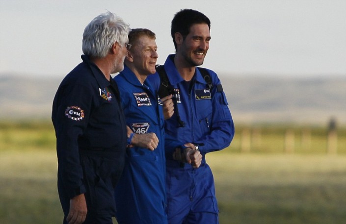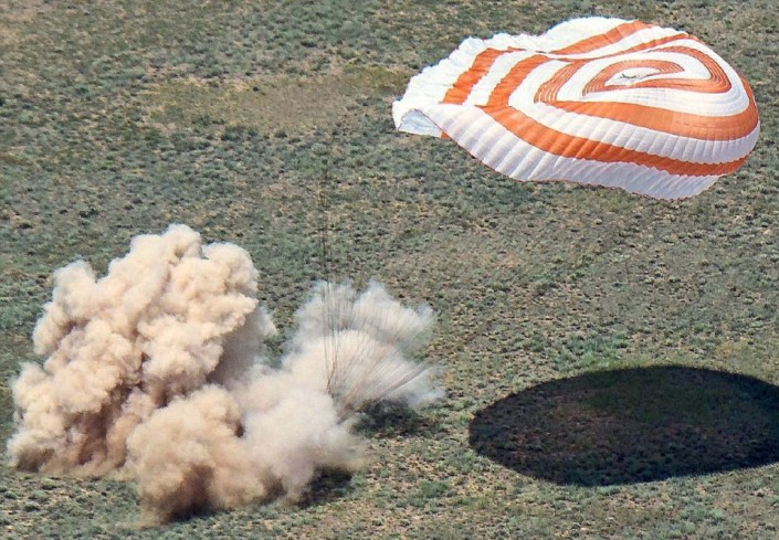 Тимоти Пик, Юрий Маленченко и Тимоти Копра приземлились в спускаемой капсуле.
