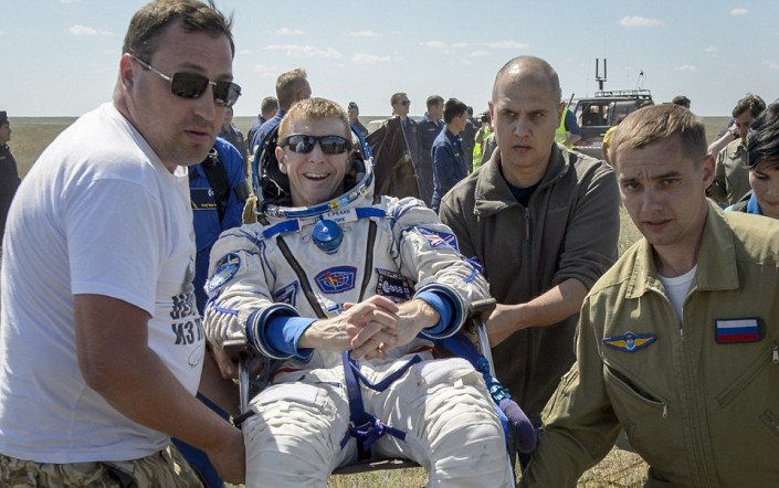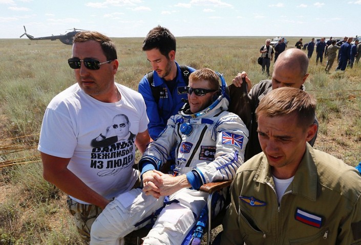 В субботу, 18 июня, в казахстанской степи в 147 километрах от Жезказгана успешно приземлился спускаемый аппарат корабля "Союз". Из космоса вернулись россиянин Юрий Маленченко, американец Тимоти Копра и англичанин Тимоти Пик, сообщает телеканал МИР.