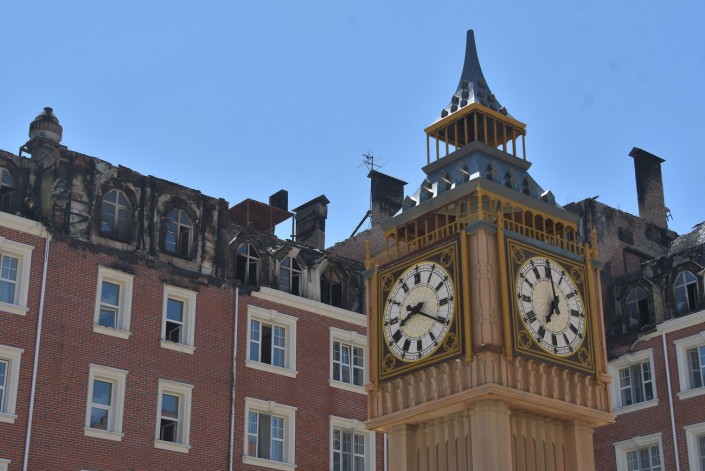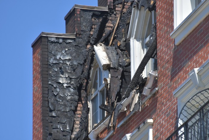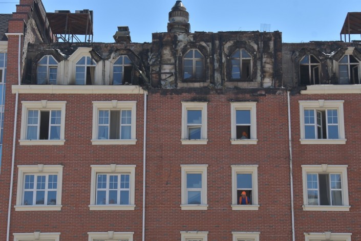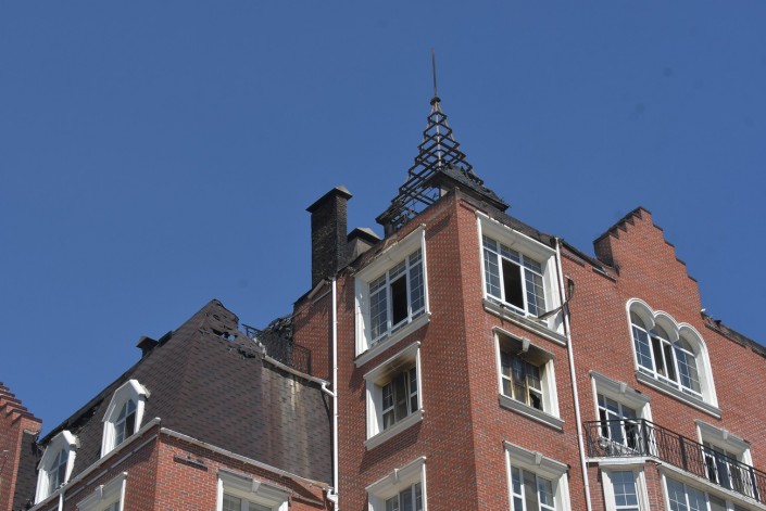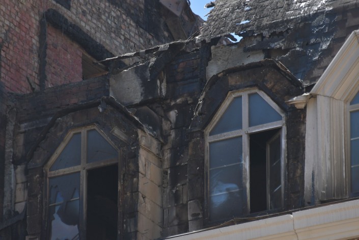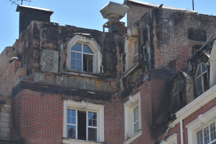 Так "Британский квартал" выглядит сегодня. Вчерашний пожар тушили несколько часов, но огонь значительно повредил несколько квартир на верхних этажах.